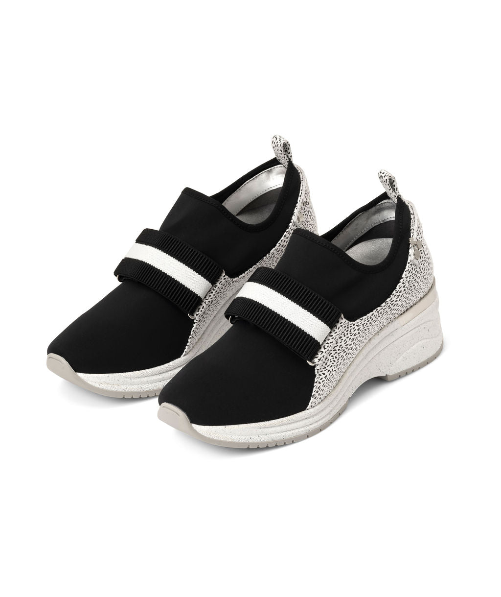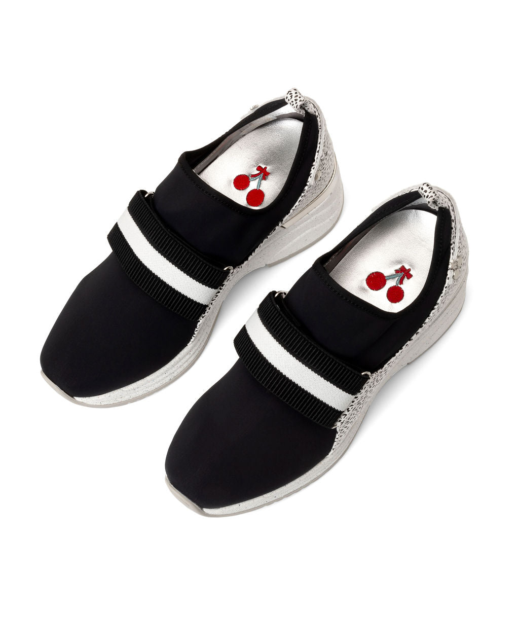 Sporty, spicy, stripes for that stylish pop to jazz up your sneakers. Feel like it's a Sundae all day, everywhere, and now every day can be a Fundae! 100% Recycled Materials; Sock-like scuba comfort made from recycled lycra wrapped around the sides with plant-based silver corn and topped off with a sporty striped elastic. Easily swap your top for ribbons, bling and variety of toppings. Sundaes are supported with extra thick cushy removable recycled insoles and a sturdy raised recycled rubber sole. *If you have a high arch or your Sundaes feel tight, try replacing the insole with a thinner model to achieve your ideal comfort.